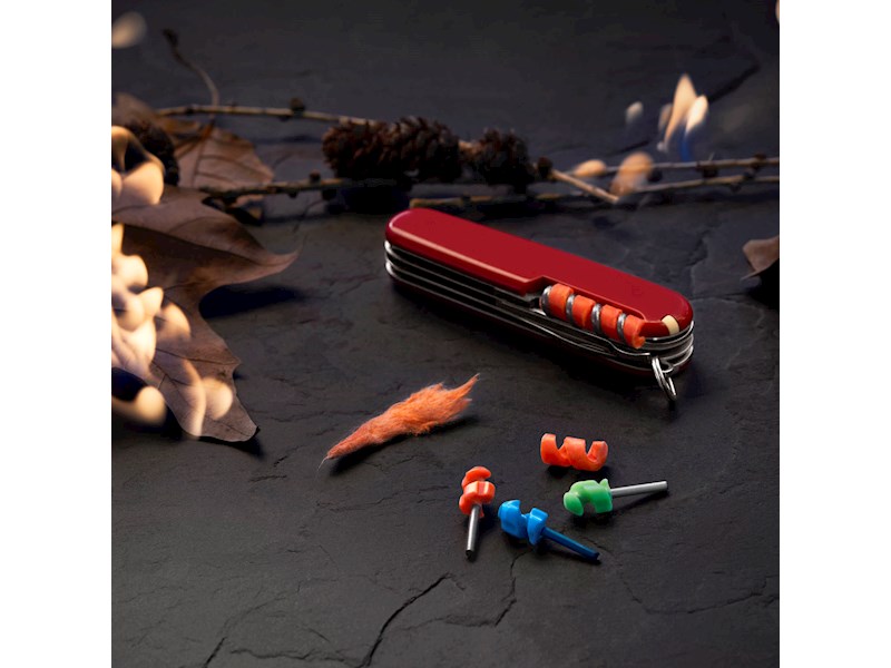Die Kunst des Feuermachens hat eine jahrhundertealte, überlieferte Tradition. Jetzt können Sie im Handumdrehen ein Feuer entfachen, wo immer Sie sind: Ob Sie rasch für Wärme sorgen oder etwas Kleines kochen möchten, im Korkenzieher Ihres Taschenmessers verstaut, ist jederzeit alles dafür Erforderliche griffbereit. Mit Feuerstählen in drei verschiedenen, bei Nacht leuchtenden Farben und sechs wasserfesten Helix Tindern ist unser kompaktes Mini Tool FireAnt Set ein Gewinn für jedes Outdoor-Abenteuer.