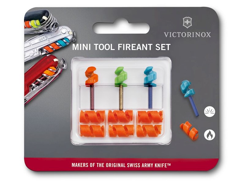 Die Kunst des Feuermachens hat eine jahrhundertealte, überlieferte Tradition. Jetzt können Sie im Handumdrehen ein Feuer entfachen, wo immer Sie sind: Ob Sie rasch für Wärme sorgen oder etwas Kleines kochen möchten, im Korkenzieher Ihres Taschenmessers verstaut, ist jederzeit alles dafür Erforderliche griffbereit. Mit Feuerstählen in drei verschiedenen, bei Nacht leuchtenden Farben und sechs wasserfesten Helix Tindern ist unser kompaktes Mini Tool FireAnt Set ein Gewinn für jedes Outdoor-Abenteuer.
