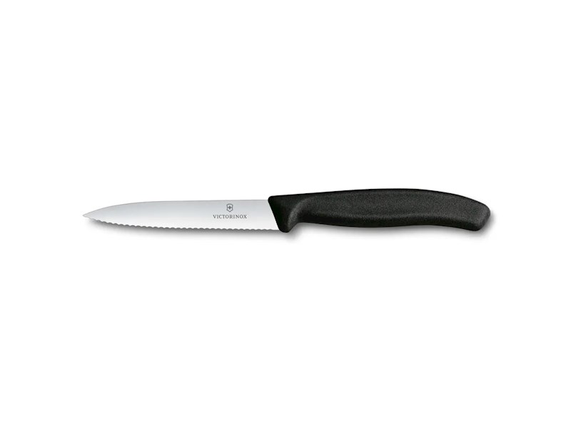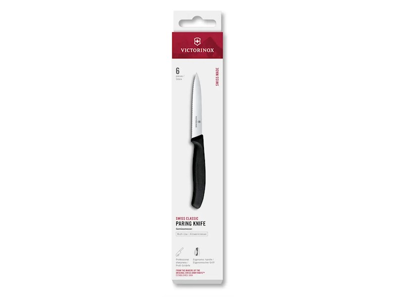 versandbereit in 2 - 3 Arbeitstagen (6 Stück) - Gemüsemesser, 100 mm, Wellenschliff, Schwarz, Swiss Classic